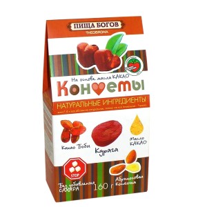 Благодаря какао-бобам и какао-маслу конфеты содержат большое количество легкоусвояемых витаминов (А, Е, РР, группа В, бета -каротин) и минералов (кальций, калий, магний, натрий, фосфор, сера, хлор, железо, цинк, медь, марганец, фтор, молибден),а так же пищевые волокна, органические кислоты, насыщенные жирные кислоты, растительный белок (около 12 г на 100 гр. продукта). Курага же эффективно выводит тяжёлые металлы и холестерин, нормализует выработку инсулина, богата железом, калием и кальцием. Помимо полезных свойств, конфеты обладают замечательным вкусом, послужат отличным полезным лакомством для детей и взрослых. Сладость конфетам придают натуральные сухофрукты, в процессе приготовления не используются сахар, загустители, консерванты и ГМО. Такого Вы еще не пробовали!