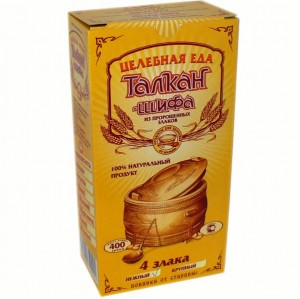 Талкан «4 злака» приготовлен из пророщенных зёрен пшеницы, ржи, ячменя и овса, поэтому содержит в себе все полезные свойства, присущие этим злакам.