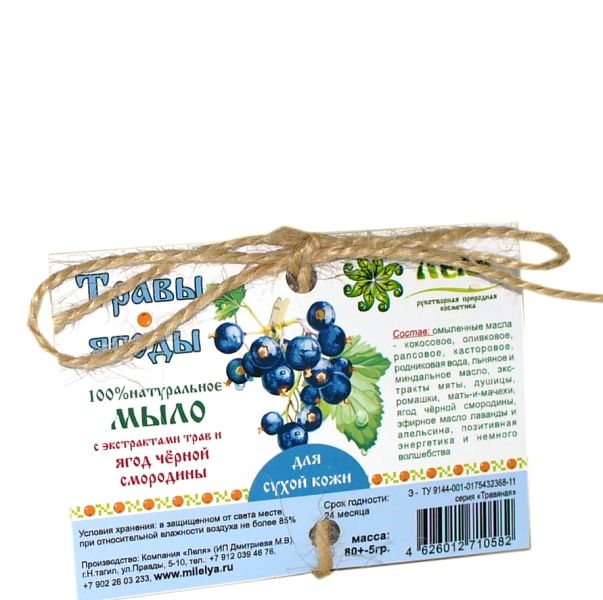 Мыло С ЭКСТРАКТАМИ ТРАВ И ЯГОД ЧЁРНОЙ СМОРОДИНЫ для сухой кожи 80 г (Леля)