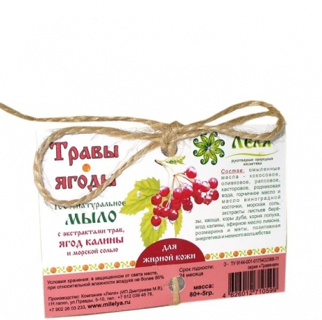 Мыло С ЭКСТРАКТАМИ ТРАВ И ЯГОД КАЛИНЫ для жирной кожи 80 г (Леля)
