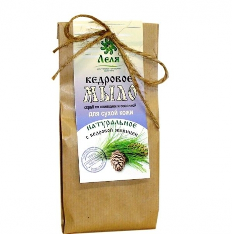 Кедровое мыло-скраб ДЛЯ СУХОЙ КОЖИ со сливками и овсянкой 80 г (Леля)