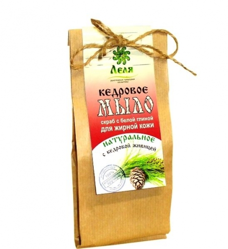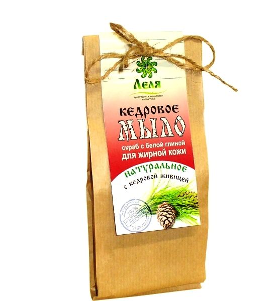 Кедровое мыло-скраб ДЛЯ ЖИРНОЙ КОЖИ с белой глиной 80 г (Леля)