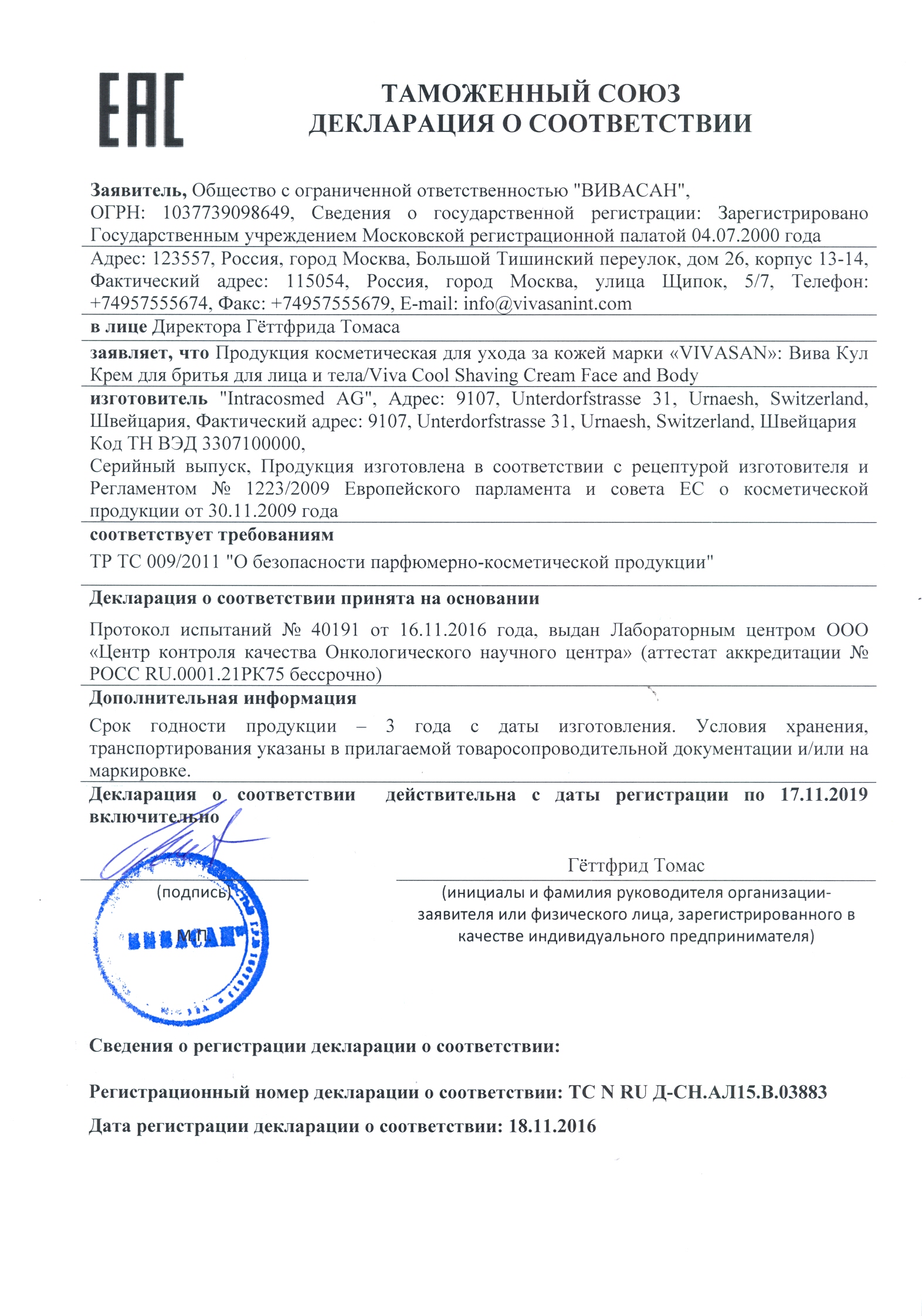 Отзыв о ВИВА КУЛ КРЕМ ДЛЯ БРИТЬЯ 200 МЛ(Vivasan, Швейцария):