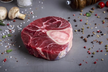 Оссобуко — это говяжья рулька, распиленная на ломтики толщиной 2-4 см. Прекрасно подходит для тушения.