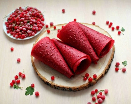 Пастила из садовой красной смородины имеет легкую кислинку. Для придания сбалансированного, нежного вкуса добавляем немного яблока и банана.