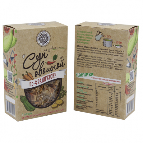 В каждом пакетике — вкусные супы, для варки которых нужно всего 5-10 минут и указанный на упаковке объем чистой воды. Так просто позаботиться о себе и близких с качественными полуфабрикатами, которые мы выпускаем по улучшенным рецептурам.