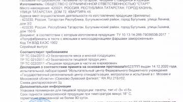 Фарш: говядина, филе куриное, лук репчатый, соль, перец черный. Тесто: мука в/с, вода питьевая, соль.