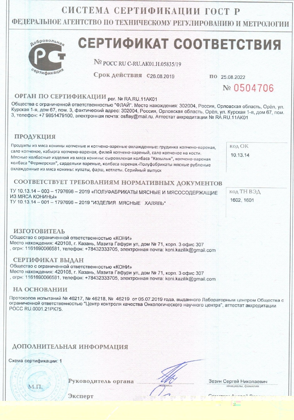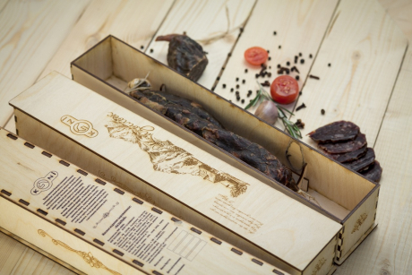 Сыровяленое конское мясо. Изготавливается путем измельчения вручную тщательно очищенного от жилок мяса. Полученная мясная заготовка наполняется в натуральную оболочку из телячьей кишки класса А и вывешивается для вяления в естественных условиях. Процесс изготовления занимает от 3-х до 4-х месяцев. Полученный продукт может храниться до 120 суток в холодильнике.