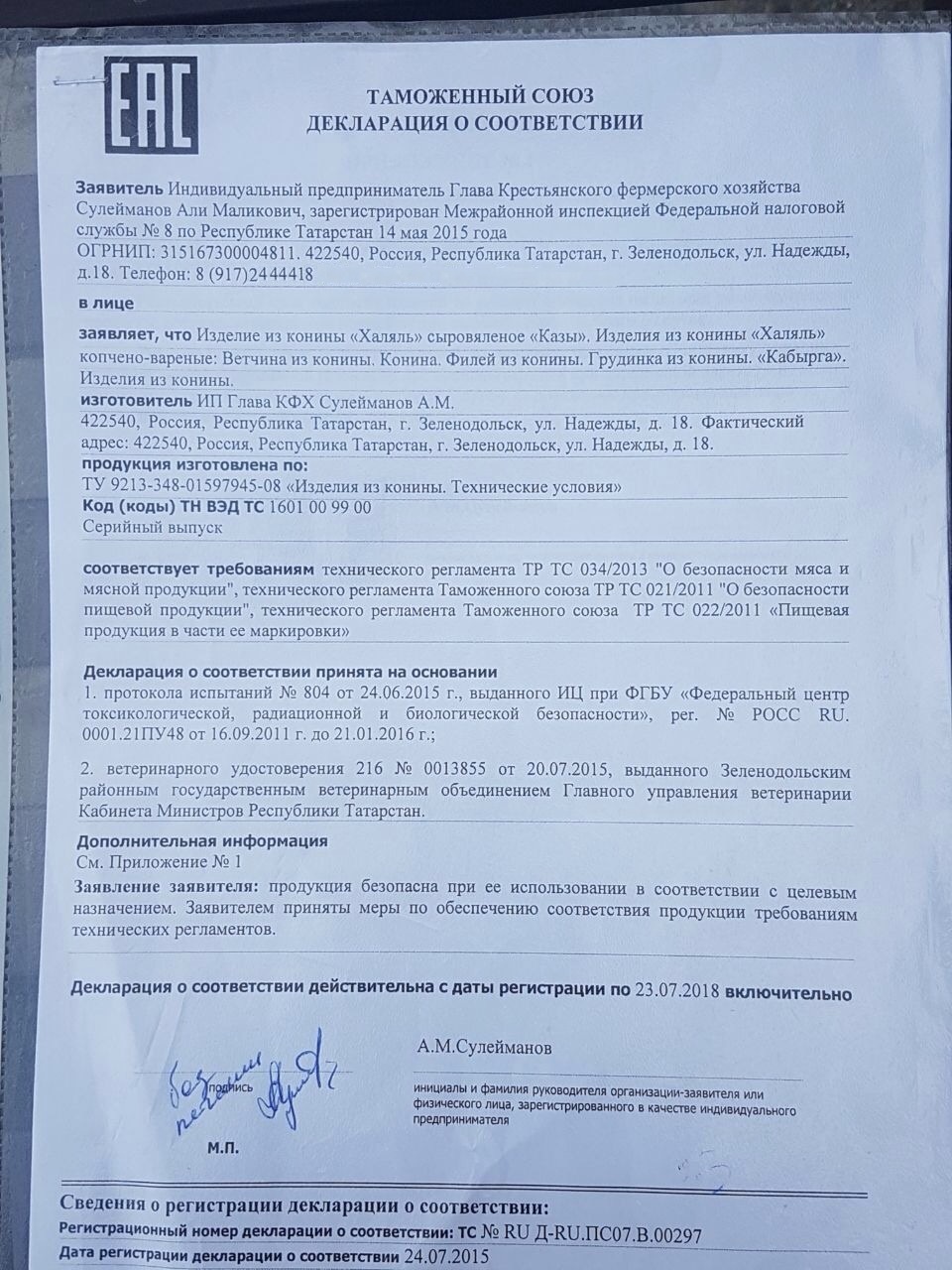 Поставщик КФХ Али Сулейманов