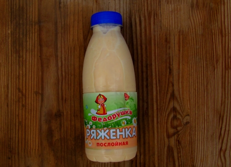 Ряженка – традиционный натуральный кисломолочный продукт, производимый путем закваски топленого коровьего молока. Готовится из цельного коровьего молока. После надоя, молоко томится при температуре 92 градуса на протяжении 9 часов, чтобы продукт был здоровым и насыщенным. При ежедневном употреблении ряженки значительно улучшается работа желудочно-кишечного тракта и нормализуется функция почек; кроме того, она очень приятна на вкус.