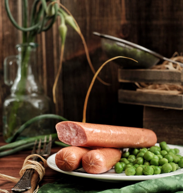 Краковские сосиски с добавлением зерен горчицы и чеснока, слегка подкопченные на буковых опилках. Покупателям нужно просто опустить их в горячую воду на 5 -7 минут, чтобы разогреть. Кипятить их нельзя — они потеряют свой аромат.