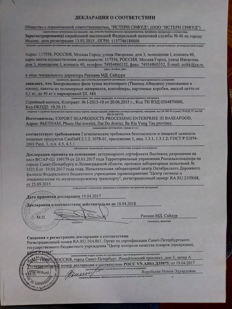 Отзыв о Филе тунца: