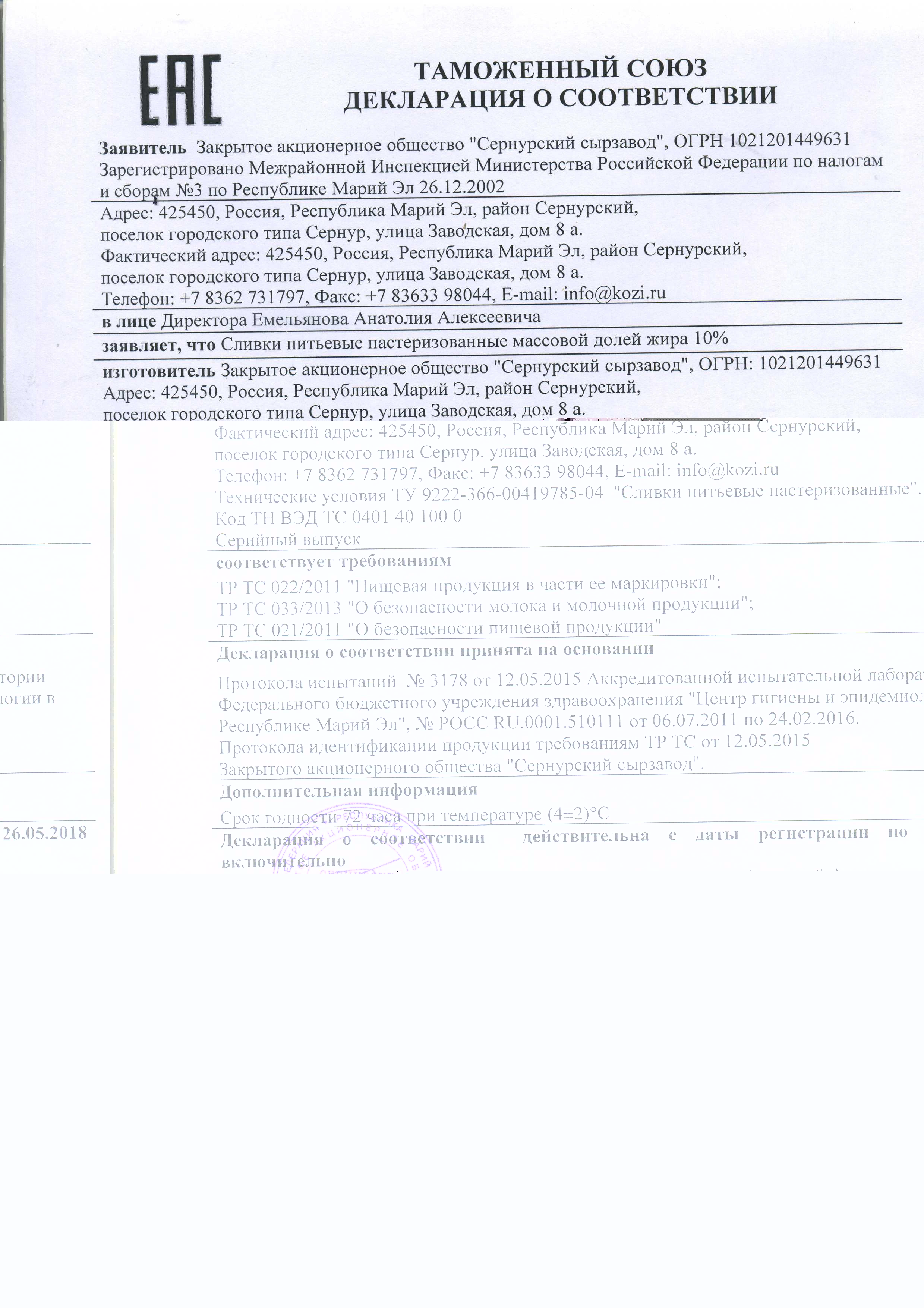 Срок годности: 72 часа