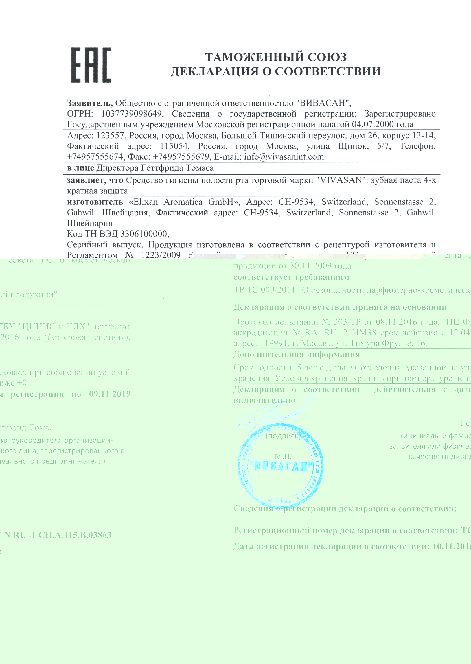 Изготовитель:«Elixan Aromatica GmbH», Швейцария