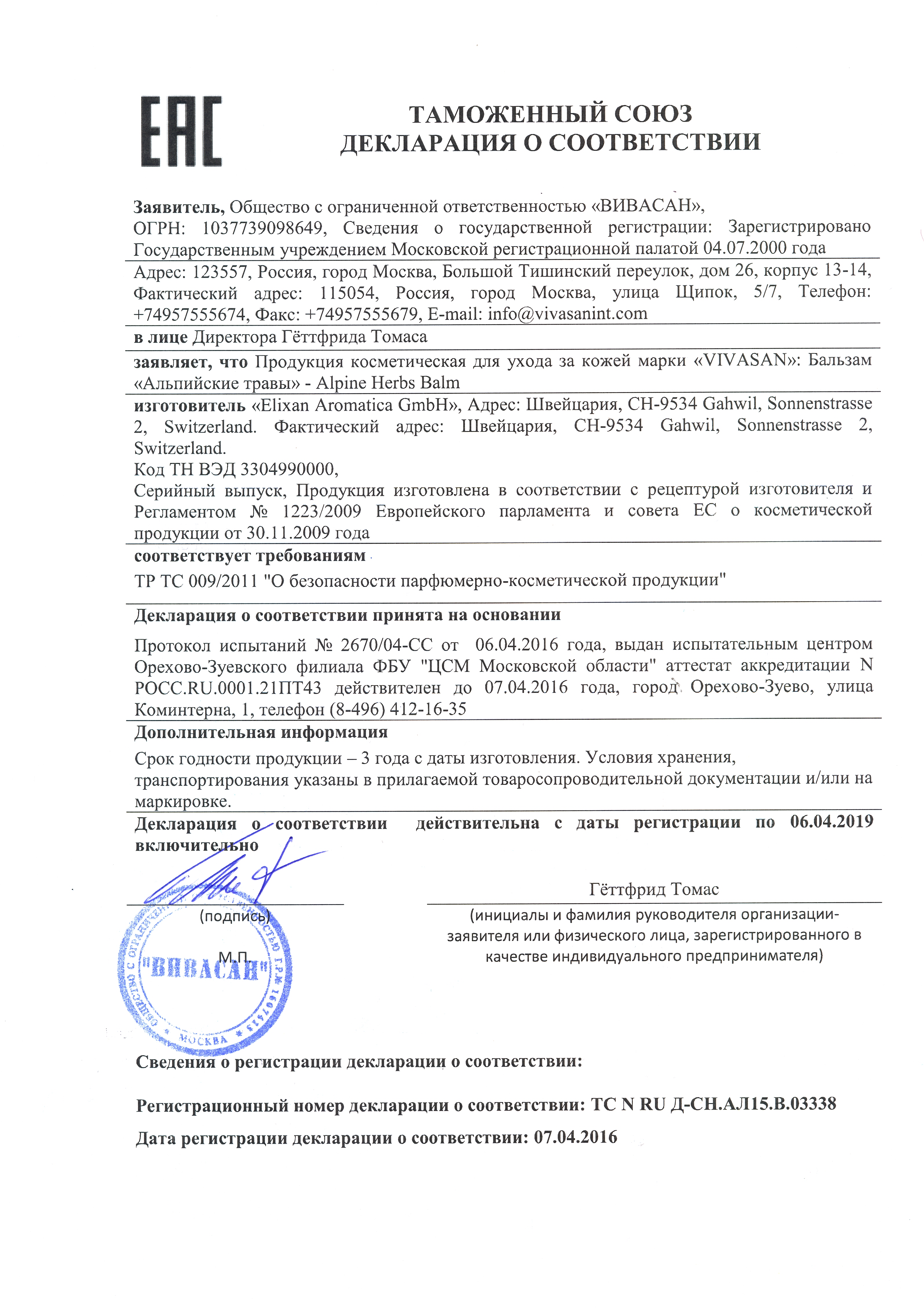 Изготовитель:«Elixan Aromatica GmbH», Швейцария