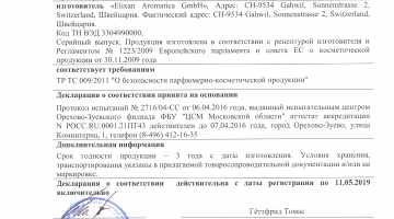 Изготовитель:«Elixan Aromatica GmbH», Швейцария
